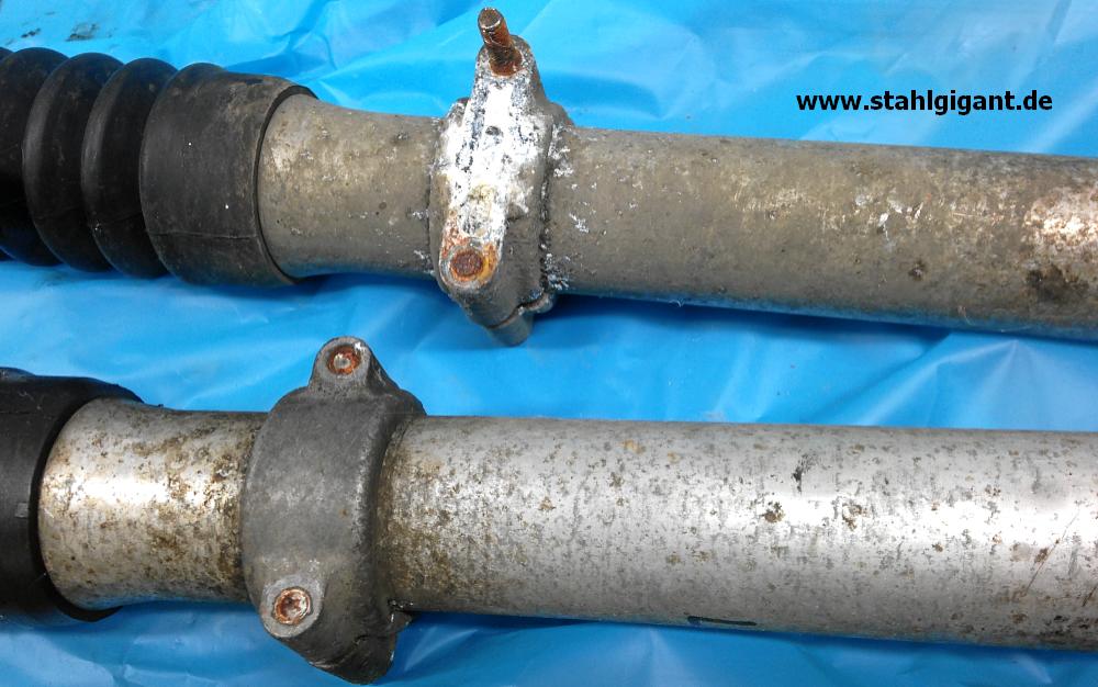 Hier die verrosteten Standrohre und gerissenen Hülsen.